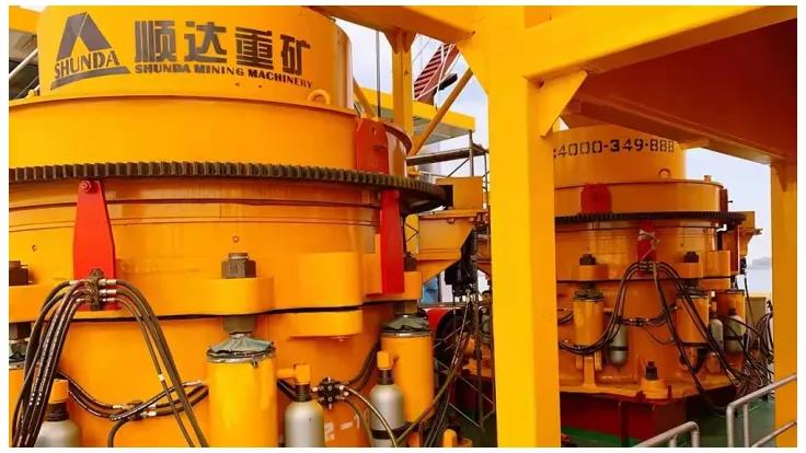 獲悉,順達重礦集團首創“時產1000噸機制砂水上移動破碎工作站”。該水上移動破碎工作站運輸方便,骨料可發往全國各地,運輸成本低,可根據不同的破碎工藝要求組成“先碎后篩”,也可以組成“先篩后碎”流程,基于物料平衡的設備動平衡設計,有效解決船體共振,船體傾斜等難點。