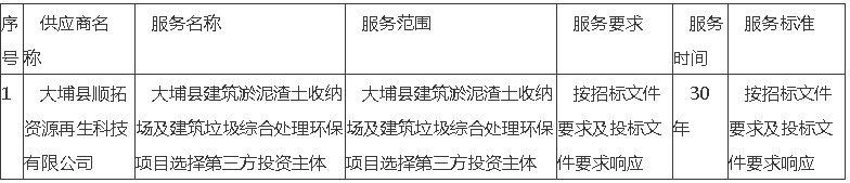 9月27日,中國政府采購網(wǎng)發(fā)布了大埔縣城市管理和綜合執(zhí)法局大埔縣建筑淤泥渣土收納場及建筑垃圾綜合處理環(huán)保項目選擇第三方投資主體中標(biāo)公告。大埔縣順拓資源再生科技有限公司以3000萬元中標(biāo)該項目。詳情如下: