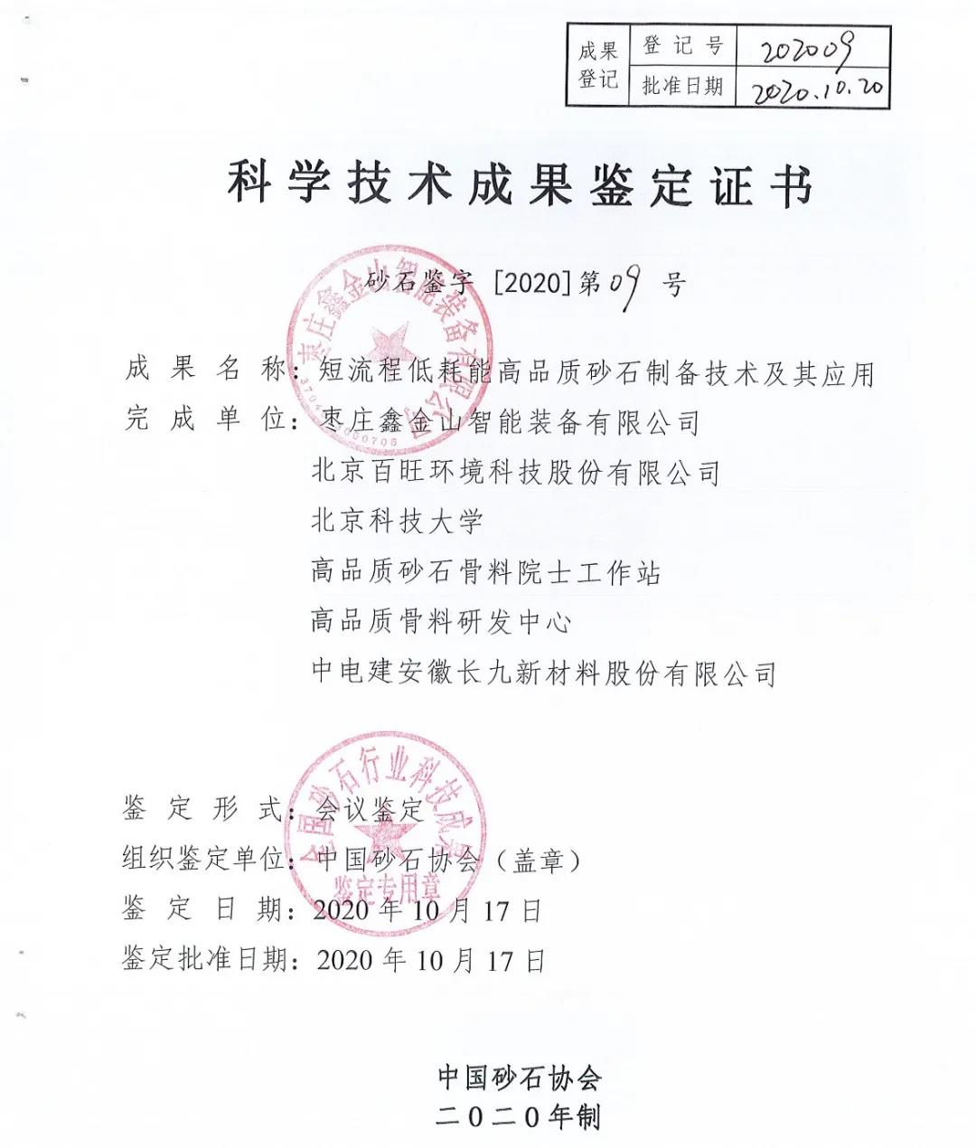 項目采用鑫金山“短流程低能耗高品質砂石生產工藝”,該工藝流程短、綜合能耗低,2020年被中國砂石協會專家委員會評定通過科技成果鑒定,鑒定專家們一致認定該工藝整體技術達到國際先進水平。