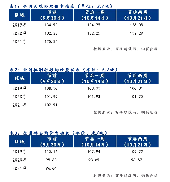 小編匯總近3年國慶節后全國主要城市天然砂、機制砂、碎石均價,以供參考。