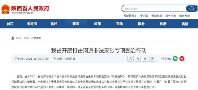 陜西省:開展打擊河道非法采砂專項整治行動