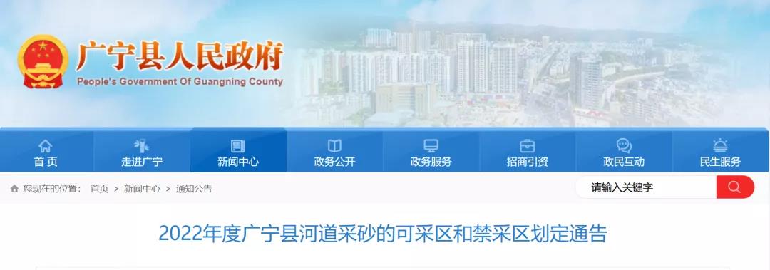 據了解,廣東省肇慶市廣寧縣發布《2022年度廣寧縣河道采砂的可采區和禁采區劃定通告》,(以下簡稱《通知》)。《通知》表明2022年度廣寧縣境內河道范圍無可采區。2022年度廣寧縣境內河道范圍均為禁采區。