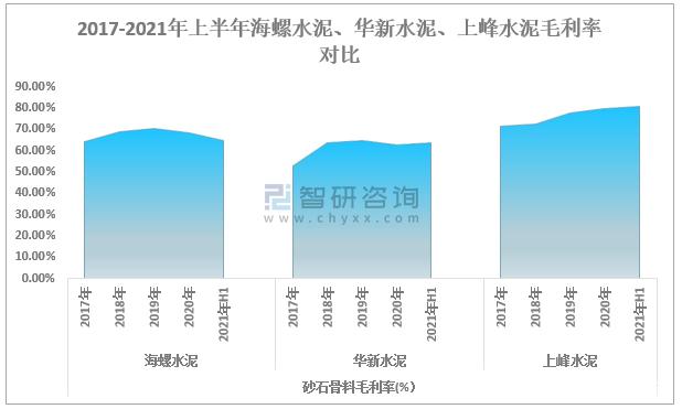 2017-2021年上半年海螺水泥、華新水泥、上峰水泥毛利率對比