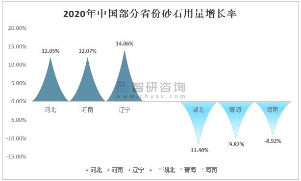 從中國各省份砂石用量增長幅度來看,2020年,砂石用量增長幅度第一的是遼寧省,增幅為14.06%;第二是河南省,增幅為12.07%;第三是河北省,增幅為12.05%。而砂石需求量降幅最大的三個省份則分別為湖北省、青海省、海南省,降幅分別是11.40%、9.82%及8.92%。