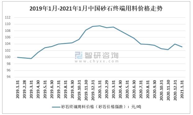 2019年1月-2021年1月中國砂石價格指數走勢