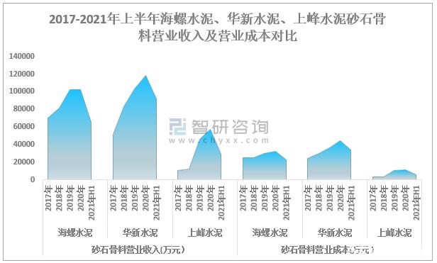 2017-2021年上半年海螺水泥、華新水泥、上峰水泥砂石骨料營業收入及營業成本對比