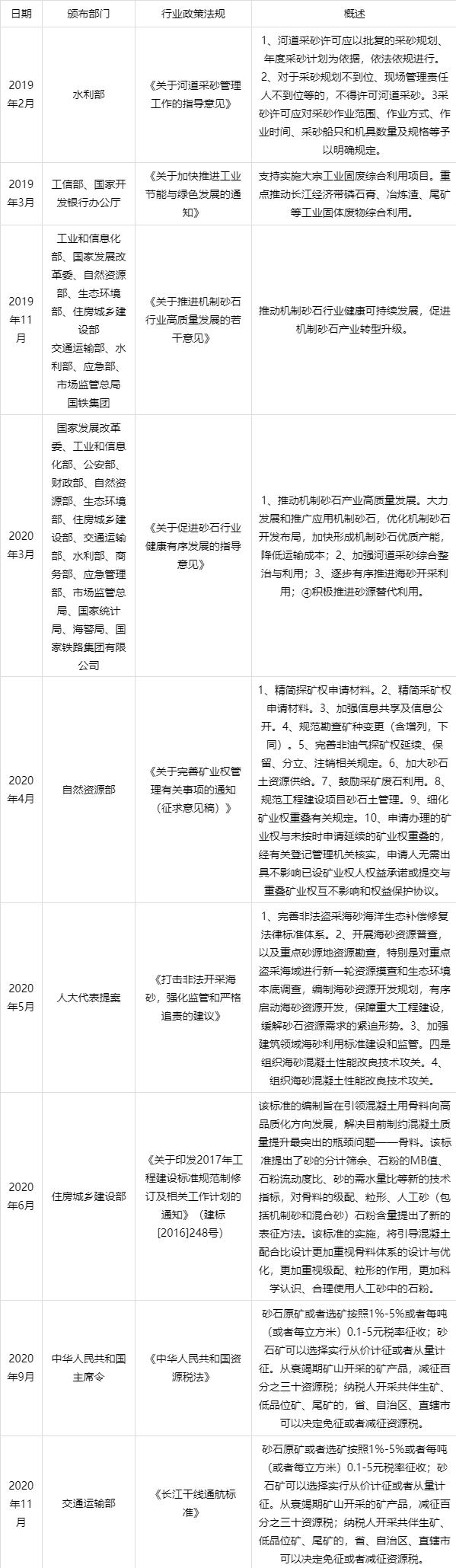 中國砂石骨料行業相關政策法規
