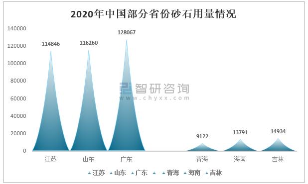 2020年中國部分省份砂石用量情況