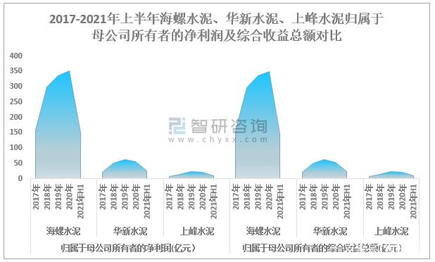2017-2021年上半年海螺水泥、華新水泥、上峰水泥歸屬于母公司所有者的凈利潤及綜合收益總額對比