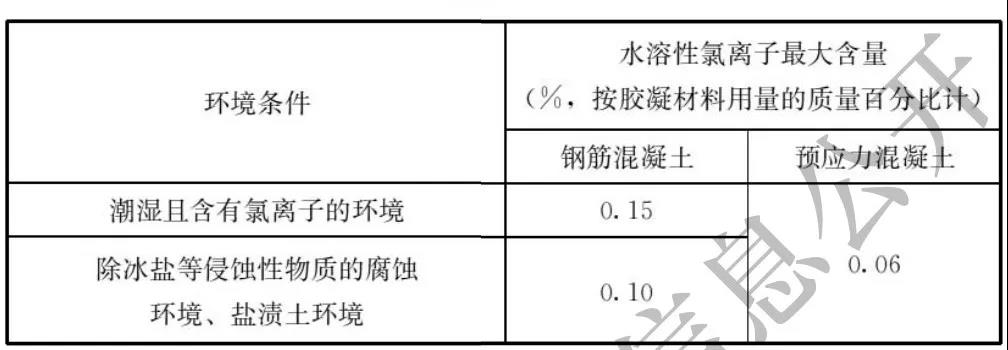 3.1.8 結構混凝土中水溶性氯離子最大含量不應超過表 3.1.8的規定值。計算水溶性氯離子最大含量時,輔助膠凝材料的量不應大于硅酸鹽水泥的量。