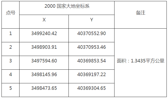 (五)開采范圍:本次拍賣出讓的安徽省博望區薛津建筑用安山巖礦采礦權,礦業權范圍面積1.3435平方公里,由5個拐點圈定,具體拐點直角坐標如下: