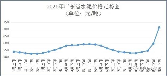 三、水泥價格大幅拉升,混凝土價格緊跟上漲。9月下旬,全省水泥平均購進價為每噸713元,環比上升19.83%。其中,珠三角、粵西、粵北和粵東地區購進價分別為每噸709元、725元、689元和734元,環比分別上升17.87%、17.38%、25.52%和27.85%。9月下旬全省混凝土平均批發價為每立方米605元,環比上升8.96%。