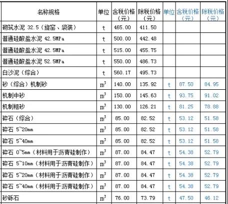 柳州水泥、砂石價格