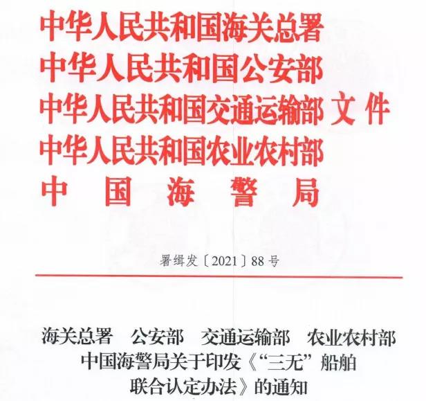 近日,海關總署、公安部、交通運輸部、農業農村部、海警局聯合制定印發了《“三無”船舶聯合認定辦法》(以下簡稱《辦法》)。《辦法》共十三條,從目的依據、適用范圍、責任主體等方面,全面明確了“三無”船舶聯合認定辦法。