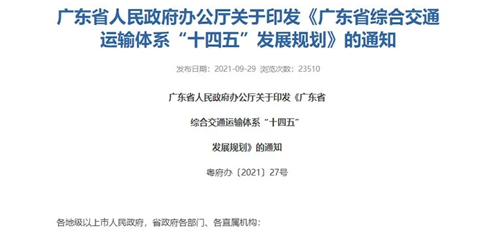 日前,廣東省人民政府辦公廳印發(fā)了《廣東省綜合交通運輸體系“十四五”發(fā)展規(guī)劃》,表示“十四五”期間,廣東將緊扣“雙區(qū)”建設、“雙城”聯(lián)動、“—核一帶一區(qū)”區(qū)域發(fā)展格局等重大戰(zhàn)略布局,打造“一中心三極點”綜合交通樞紐布局(以粵港澳大灣區(qū)樞紐集群為中心,汕頭、湛江、韶關為極點),完善“三橫四縱兩聯(lián)”省域交通主骨架,建設多向聯(lián)通的國內外運輸通道。