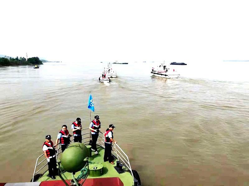 按照百日攻堅實施方案,東至縣全面整治砂石非法開采、裝卸及交易,治源頭、清囤砂、管末端、堵銷路,形成了嚴厲打擊長江河道非法采砂的強大合力。圖為執法人員在巡察。