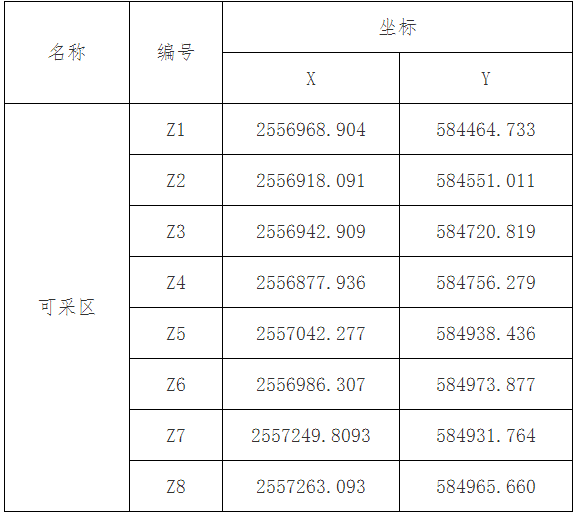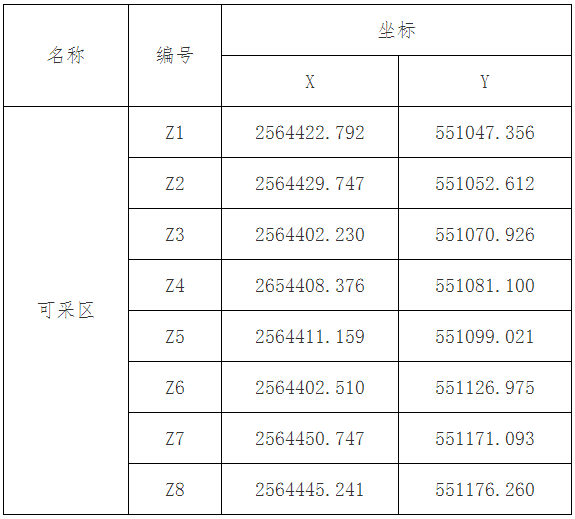 (六)千官河大全采區位于千官鎮大全村河段,采區起點為大全埇仔口,終點為大全嶺墩。可采區斷面邊線坐標: