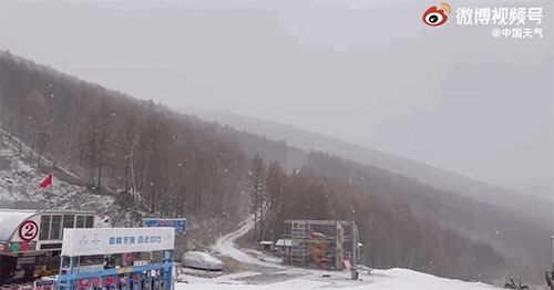 △11月2日早上,河北省張家口市崇禮區(qū)已飄雪。來源:@中國天氣