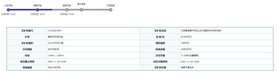 根據《江西省土地使用權和礦業權統一網上交易管理辦法》的規定,受瑞昌市自然資源局委托,瑞昌市自然資源儲備交易中心以網上拍賣方式出讓以下采礦權。