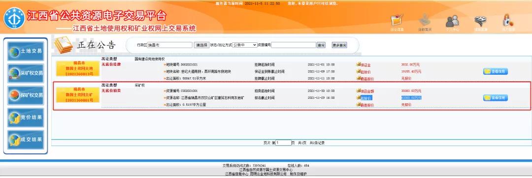 1、交易網址:江西省公共資源電子交易平臺-江西省土地使用權和礦業權網上交易系統(http://jxgtjy.jxsggzy.cn);