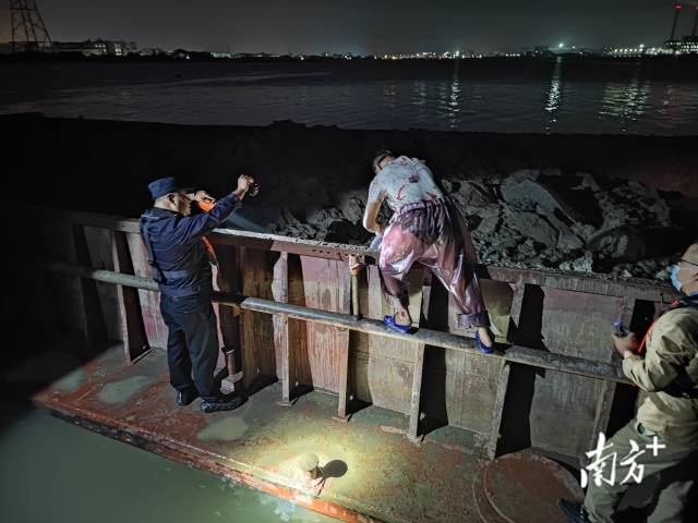 當晚9時50分,由中山市海洋綜合執法支隊支隊長梁灶帶領隊,一眾聯合執法人員從橫門漁港出發開始突擊巡查。當巡查至洪奇瀝沙仔碼頭至屎船沙海域時,發現1艘抓斗式
