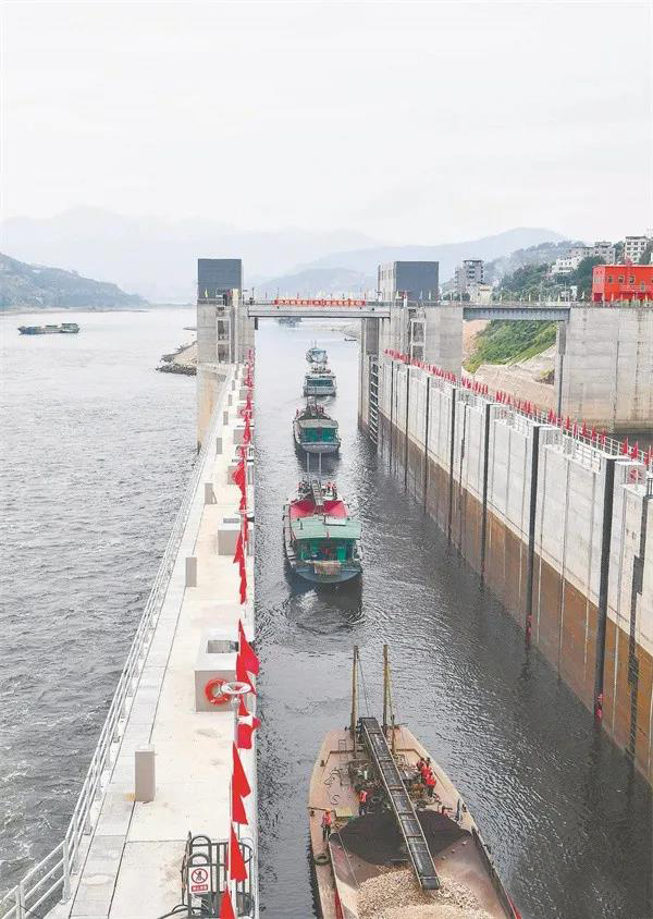 這標志著閩江水口段航道全線貫通,南平至福州段實現了365天全天候通航。據悉,“閩江水口航運樞紐”由上游水口水電站通航樞紐(水口船閘、升船機)、下游水口壩下工程船閘“兩閘一機”組成,它實現了閩江航運的兩大躍升:閩江最低年通航躍升為365天全天候通航,南平至福州段通航由能力500噸級躍升至1000噸級,年貨運能力預計達到1400萬噸,每年可為閩江流域過往船只節約運輸成本近14億元。