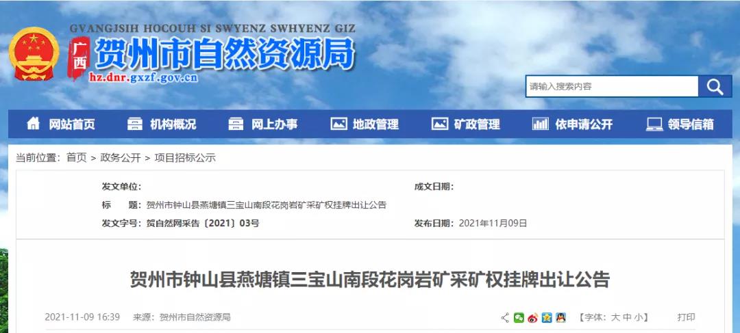 賀州市鐘山縣燕塘鎮三寶山南段花崗巖礦采礦權掛牌出讓公告