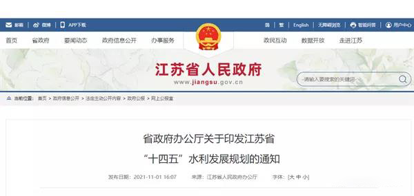 近日,江蘇省政府辦公廳印發《江蘇省“十四五”水利發展規劃》(以下簡稱《規劃》),《規劃》分為規劃背景、總體要求、主要任務、實施保障四大板塊。