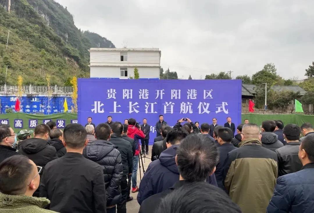 11月16日上午,貴陽港開陽港區北上長江首航儀式舉行。14艘貨船運載6800噸礦石,從開陽港區洛旺碼頭出發,前往重慶。這是烏江復航以來首次大規模全線航運。