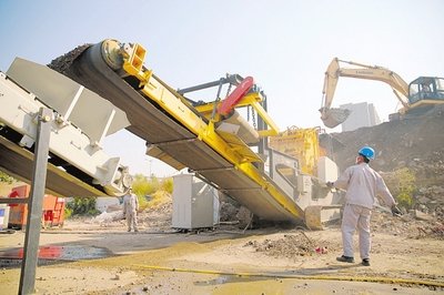 “固定+移動”高效率處置。市級終端投運干粉砂漿、混凝土制磚和水穩(wěn)三條建筑材料生產(chǎn)線,建筑垃圾通過分揀除雜、