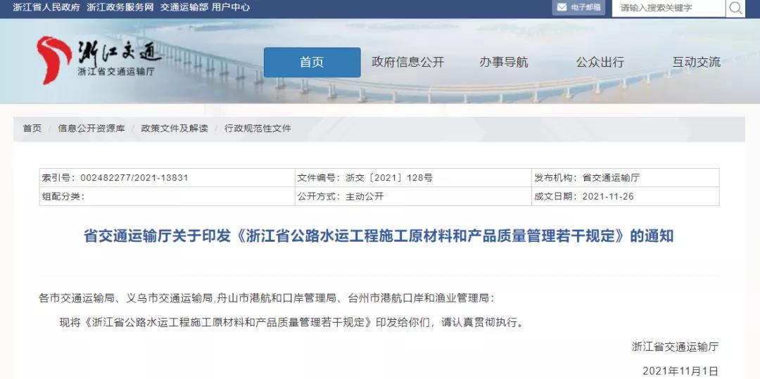 浙江省公路水運工程施工原材料和產品質量管理若干規定