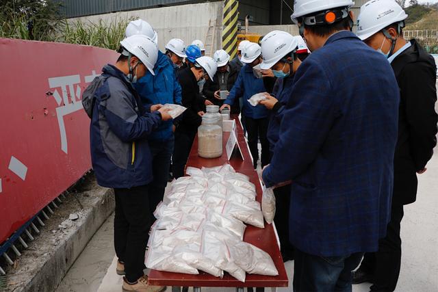 與會人員深入景文1標機制砂生產現場,實地觀摩項目在機制砂原材料、