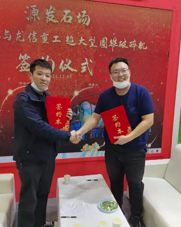 展會上, 龍信重工、華工礦機與源發石場舉行簽約儀式,賣出多缸液壓