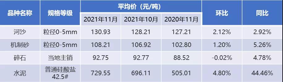 砂石、水泥、鋼材價格上漲的主要因素有:一是臨近年底,下游工地抓緊施工,建材需求量較大;二是鐵