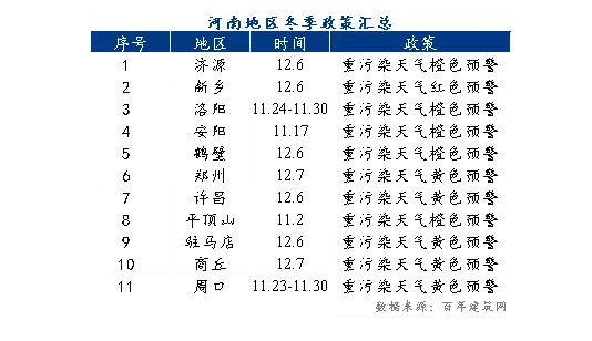 河南重污染天氣預警下,據百年建筑網調研,部分地區反饋如下: