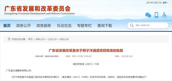 近日,為進一步完善廣東省高速公路網絡,加強粵港澳大灣區交通基礎設施互聯互通,滿足珠江口東西兩岸持續增長的交通需求,促進項目沿線經濟社會發展,廣東省發展改革委批復了《關于核準獅子洋通道工程項目申請報告的請示》,同意建設獅子洋通道工程。項目建設單位為廣東灣區交通建設投資有限公司。