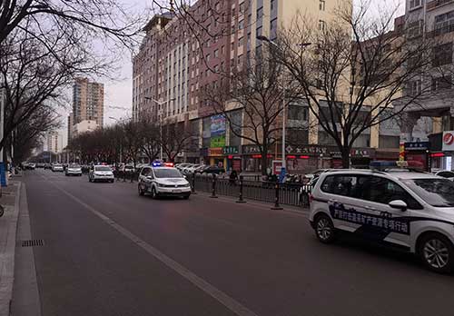 警車街頭宣傳打擊盜采礦產資源專項行動。新京報記者 李英強 攝