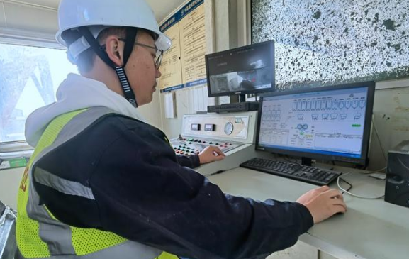 中鐵四局貴南5標工作人員進行攪拌站混凝土拌合