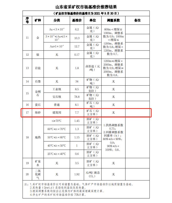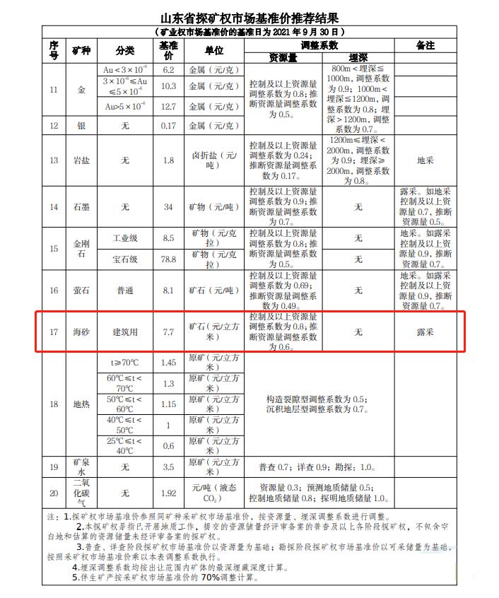 首次制定!山東省海砂采礦權探礦權市場基準價擬7.7元/方