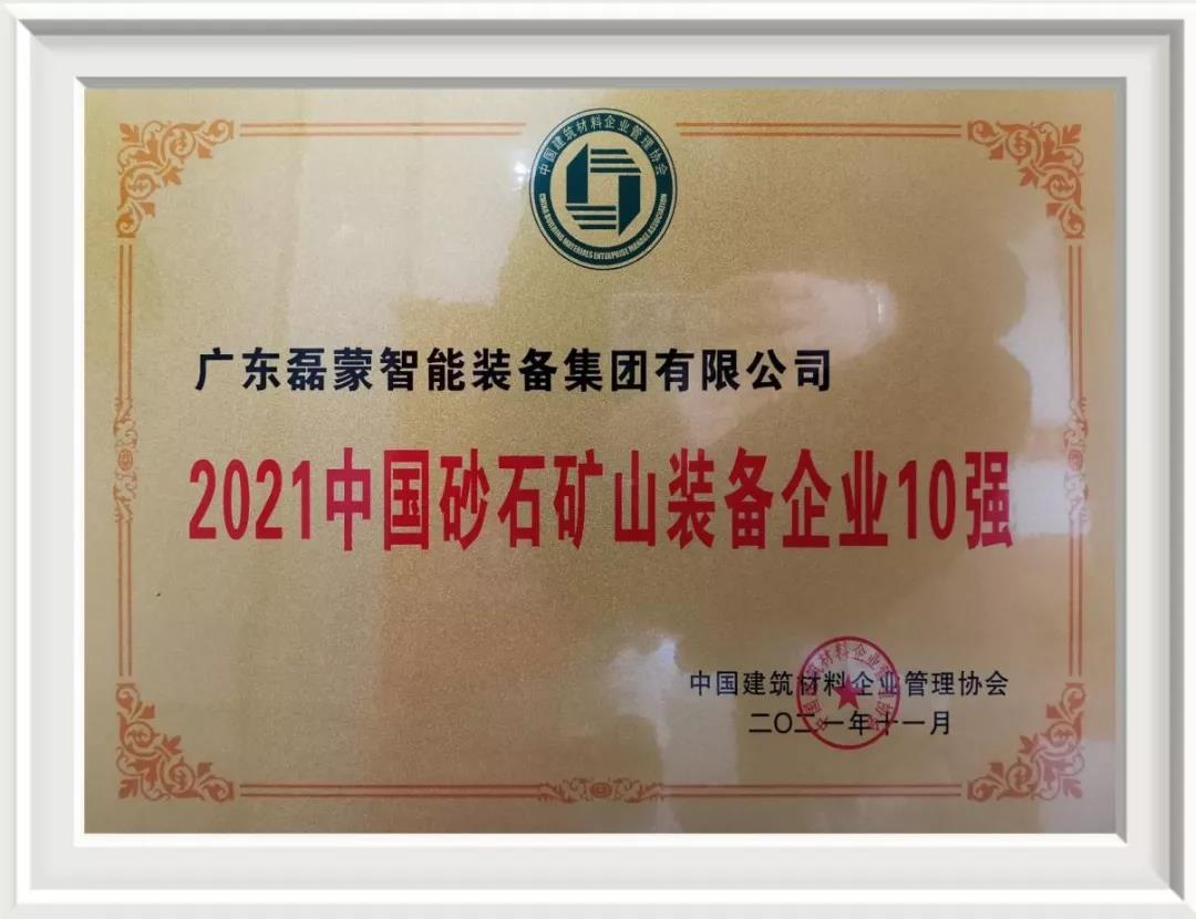 磊蒙集團榮獲“2021中國砂石礦山裝備企業10強”及“2021中國建材服務業100強”稱號