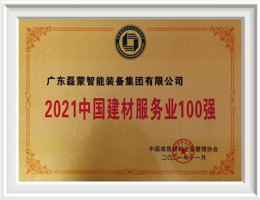 會上,2021中國建材企業500強、建材服務業100強、民營建材企業100強,最具成長性建材企業100強、創新建材企業 100 強、和諧建材企業同期發布,經審定,廣東磊蒙智能裝備集團有限公司榮獲“2021中國