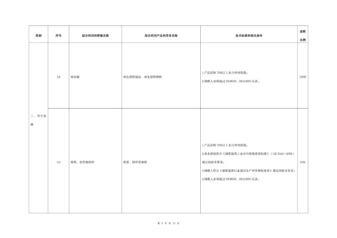 (一)本公告所稱再生資源,是指在社會生產和生活消費過程中產生的,已經失去原有全部或部分使用價值,經過回收、加工處理,能夠使其重新獲得使用價值的各種廢棄物。其中,加工處理僅限于清洗、挑選、