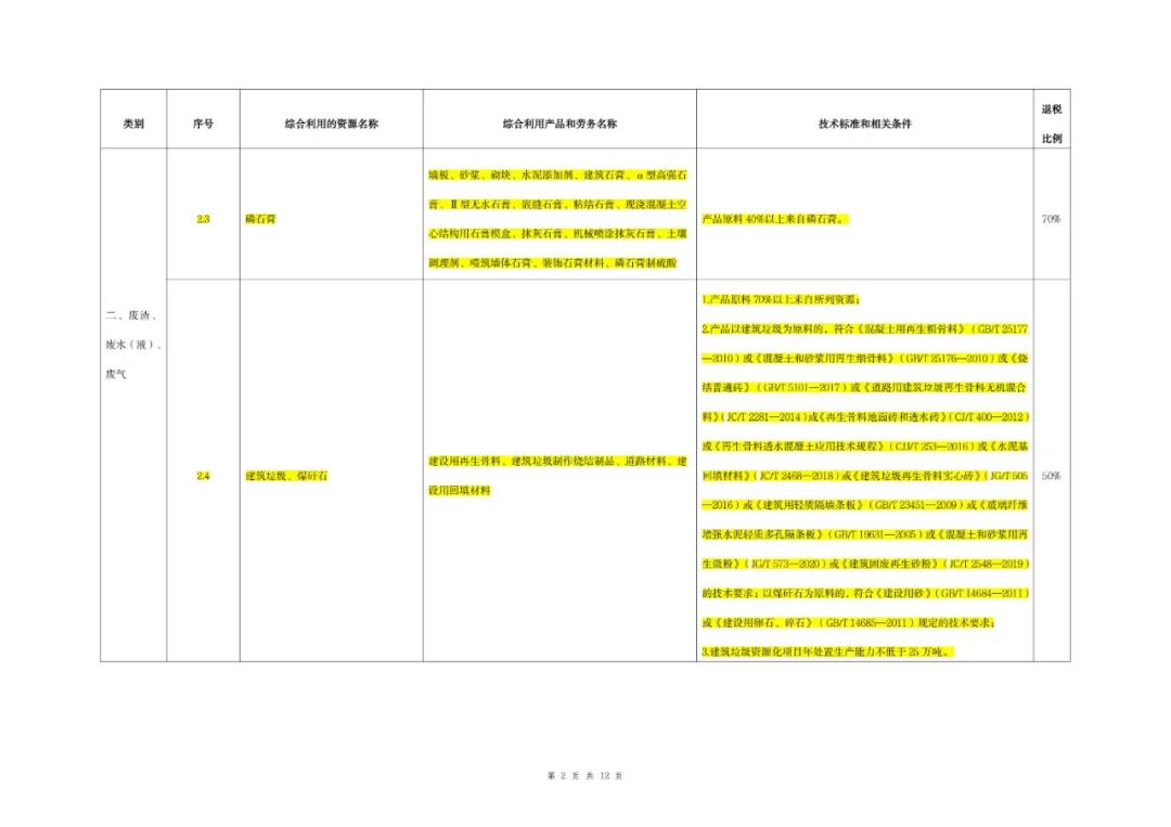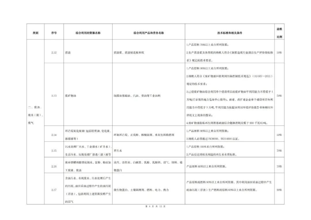 (一)綜合利用的資源名稱、綜合利用產品和勞務名稱、技術標準和相關條件、退稅比例等按照本公告所附《資源綜合利用產品和勞務增值稅優惠目錄(2022年版)》)(以下稱《目錄》)的相關規定執行。