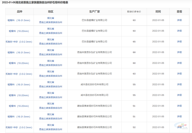機制砂 中砂(3.0-2.3mm)參考價格為65.00元/噸,近期價格保持平穩,供應商為巴東縣盛耀礦業有限公司粗骨料 (16-31.5mm)參考價格為63.00元/噸,近期價格保持平穩,供應商為巴東縣盛耀礦業有限公司粗骨料(10-20mm)參考價格為63.00元/噸,近期價格保持平穩,供應商為巴東縣盛耀礦業有限公司