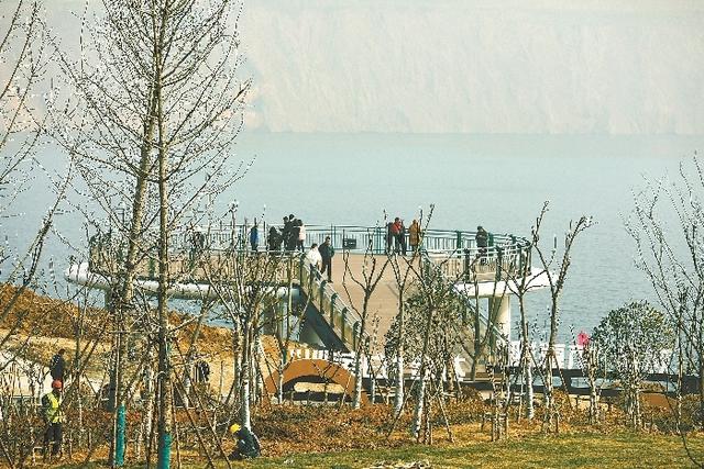 “你看!這凹山湖是由原來的凹山采場注水填坑而成,水深200多米,面積約一平方千米。”黃克斌說,為了能讓游客更直觀地欣賞凹山湖壯美景色,項目建設方對原礦坑邊坡進行了削坡減載,確保其穩定性后,在距離地平面61米高的位置向外伸展,建成了300多平方米的觀景平臺。