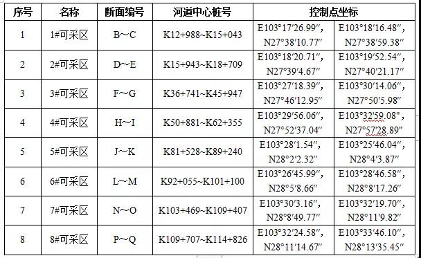 (三)規(guī)劃河段可采區(qū)控制點坐標表: