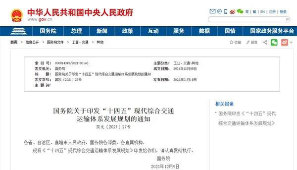 近日,為加快建設交通強國,構建現代綜合交通運輸體系,根據《中華人民共和國國民經濟和社會發展第十四個五年規劃和2035年遠景目標綱要》、《交通強國建設綱要》、《國家綜合立體交通網規劃綱要》,國務院印發《“十四五”現代綜合交通運輸體系發展規劃》。