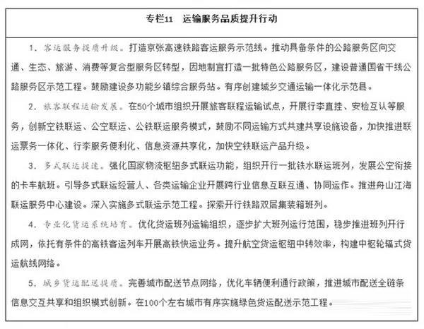 建設高效貨運服務網絡。完善與產業布局、消費格局相適應的大宗貨物、集裝箱物流網絡,建設大容量、低成本、高效率物流骨干通道,保障化肥等重要農資季節性運輸。有序發展鐵路雙層集裝箱運輸,探索開行定制化的鐵路直達貨運班列,充分利用富余運力和設施能力發展高鐵快運等鐵路快捷貨運產品。推動道路貨運高質量發展,提升規模化、集約化水平。加強航空貨運能力建設,培育壯大專業貨運機隊,優化航線和時刻配置,