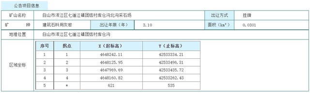 1月18日,吉林省白山市兩宗建筑石料用灰巖礦采礦權掛牌出讓,總出讓儲量140.102萬方,掛牌價格0.82元/方起。