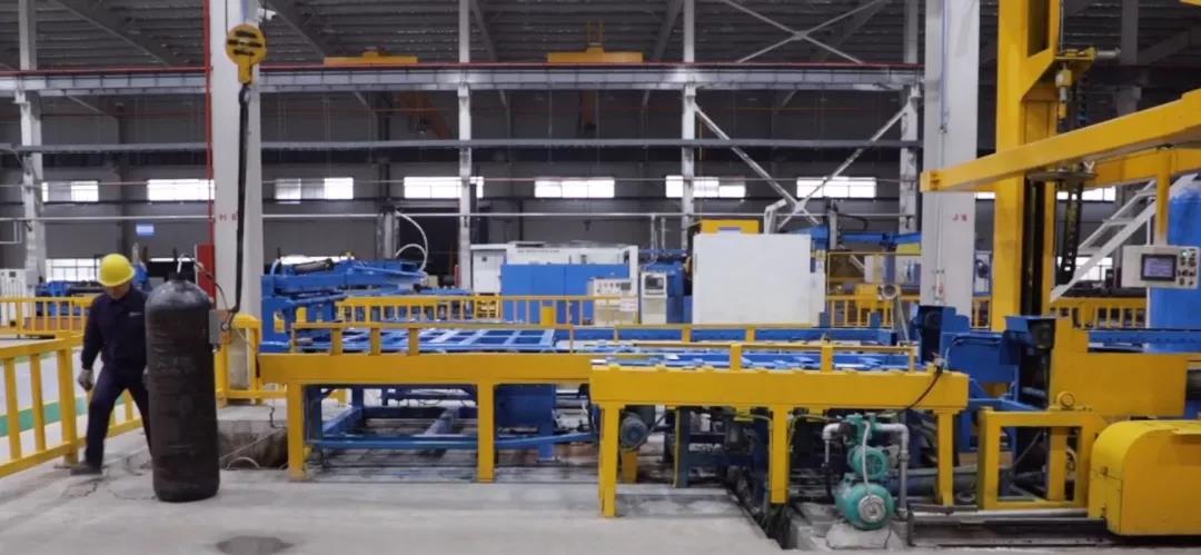 中材科技(九江)有限公司智能化工廠車間內,機械臂有條不紊地裝配作業,自動化生產線正開足馬力高速運轉。